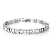 Stainless Steel White Emerald Cut Cubic Zirconia Tennis Bracelet