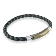Gunmetal Stainless Steel 3 Way Clasp Grey Black Leather Bracelet