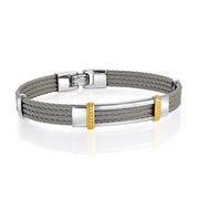 Stainless Steel and Leather 18KT Gold Beaded Accent Bracelet