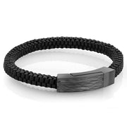 Gunmetal Ion-Plated Stainless Steel Diamond Cut Black Square Leather Bracelet