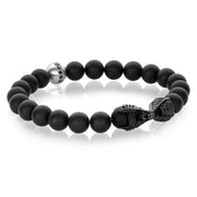 Black Matte Stainless Steel Black Cubic Zirconia Onyx Bead Bracelet