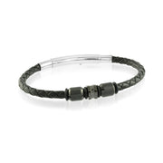 Stainless Steel Ion Plated Beads Adjustable Clasp Black Leather Bracelet