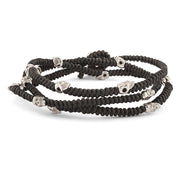 Stainless Steel Mini Skulls Triple Black Macramé Cord Bracelet