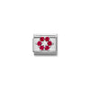 Composable CL SYMBOLS steel, Cz and 925 sterling silver RICH RED and WHITE flower