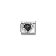 Composable CL FACETED CZ, steel with 925 sterling silver HEART with DOTS RICH SETTING Black