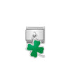 Composable Classic CHARMS steel, 925 sterling silver and enamel Green four-leaf clover