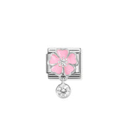 Composable Classic CHARMS steel, 925 sterling silver, enamel and cz Pink flower with round