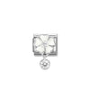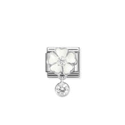 Composable Classic CHARMS steel, 925 sterling silver, enamel and cz White flower with round