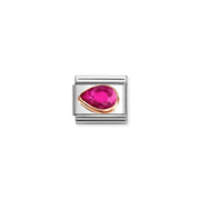 Composable Classic CZ. FACETED LEFT DROP in steel and 9k rose gold RED