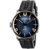 Bombé, en métal bleu avec finition soleil brossée, aiguilles et index traités avec du superluminova beige.