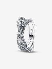 Adoptez la tendance tridimensionnelle avec l’Anneau double Croisement et pavé Pandora Timeless. Deux anneaux croisés en pavé forment cette bague saisissante en argent sterling. Des pierres scintillantes recouvrent l’avant et les côtés des deux anneaux, qui ont des largeurs un peu différentes. L’anneau interne plus large est orné du logo emblématique de Pandora gravé à l’intérieur. Il s’agit du cadeau idéal pour celles qui aiment empiler leurs bijoux. Cette bague à double anneau double le style en une seule pièce.