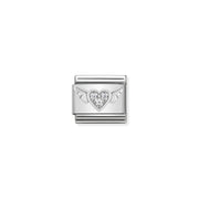 Composable CL SYMBOLS steel , Cubic zirconia and 925 sterling silver Flying heart with CZ