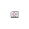 Composable CL SYMBOLS steel, Cz and 925 sterling silver RICH PINK and WHITE flower