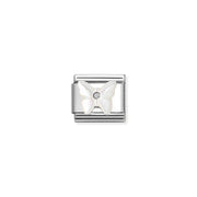 Composable Classic STONE SYMBOLS in steel and 925 sterling silver Butterfly in WHITE MOTHER OF P