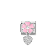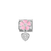 Composable Classic CHARMS steel, 925 sterling silver, enamel and cz Pink flower with heart