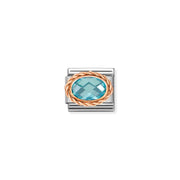 Composable Classic OVAL FACETED WITH RICH SETTING in steel and 9k gold LIGHT BLUE