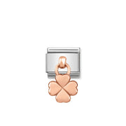 Composable Classic CHARMS in stainless steel with 9k rose gold Four Leaf Clover CZ