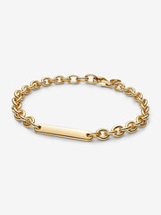 Personnalisez votre poignet avec le bracelet lien avec barre à graver. Fini à la main en plaqué or 14 K, ce bracelet est doté d’une barre polie simple sur un bracelet à chaîne. Les deux côtés de la barre peuvent être gravés. Chaque bracelet peut être ajusté d’une taille, plus grande ou plus petite. Que vous graviez vos initiales, une date importante ou un autre message qui a une signification spéciale pour vous, ce bracelet est l’incarnation d’un style moderne et personnalisable.