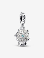 Capturez la magie des fêtes avec ce Charm-pendentif Sphère de neige et flocon de neige Fabriqué d’argent sterling et de verre de Murano, ce charm présente un motif de flocon de neige entouré de paillettes et serti dans une boule de verre, ce qui crée un sentiment spécial et magique. Ce modèle complexe exige un savoir-faire de haut niveau, car il présente de nombreux détails, y compris des formes rainurées et en relief de flocon de neige sur la base, dispersées sur la boule à neige et le long de l’anneau. Retournez le charm pour trouver le message « One in a Million » (Une sur un million) gravé sur la base. Un cadeau spécial pour un être cher ou un ajout magique à votre agencement de bijoux.