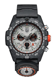 Le chronographe Bear Grylls Survival Master 3740 avec un cadran argenté et une heure assortiesLes aiguilles /minutes sont conçues pour vous aider à survivre dans les environnements les plus difficiles. Le boîtier CARBONOX™+ ultra-robuste de 45 mm et la lunette unidirectionnelle rendent ce garde-temps extrêmement léger. Les caractéristiques spéciales incluent un rappel du code SOS Morse sur le cadran, une boussole amovible sur le bracelet en caoutchouc gris foncé et une résistance à l'eau de 300 m. Les impressionnants 18 tubes Luminox Light Technology permettent à l'utilisateur de lire l'heure facilement dans toutes les conditions d'éclairage jusqu'à vingt-cinq ans. La montre comporte le logo Bear Grylls sur le cadran et la couronne vissée orange emblématique. La devise de Bear « Never Give Up » est gravée en orange sur le fond du boîtier à côté de sa signature. Il rappelle et inspire celui qui le porte, cette attitude clé qui a aidé Bear Grylls à survivre à de nombreuses situations critiques.