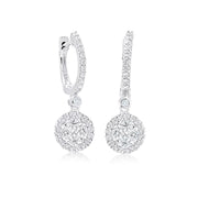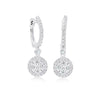 Boucles d'oreilles style "huggies" avec pendentifs en disque. Pavé, le zircon cubique de haute qualité ressemble à du diamant. Les anneaux possèdent un diamètre de 13 mm et le pendentif 8 mm.
