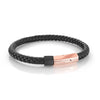 Matte Stainless Steel Push Clasp Black Leather Bracelet