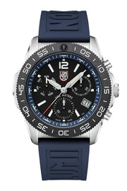 La série Pacific Diver 3140 est une toute nouvelle série dans la dimension Luminox SEA. Cette montre décontractée attrayante pour les explorateurs en plein air reste fidèle à l'ADN de la marque tout en combinant un boîtier en acier inoxydable avec une lunette en CARBONOX™, résultant en une fusion de matériaux accrocheuse. Luminox propose un bracelet en caoutchouc offrant un ajustement facile et parfait.