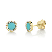 0.08CT DIAMOND & 0.47CT COMPOSITE TURQUOISE 14K Y/G STUD EARRING