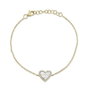 0.09CT DIAMOND & 0.56CT MOTHER OF PEARL 14K Y/G HEART BRACELET