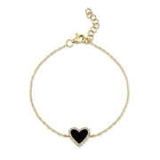 0.09CT DIAMOND & 0.57CT BLACK ONYX 14K Y/G HEART BRACELET