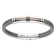ZANCAN Bracelet Robertinox en silicone large gris avec tag en argent et lignes or rose